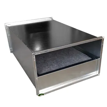 Se utilizeaza pentru reducerea nivelului de zgomot pe tronsonul de tubulatura provocat de viteza aerului si/sau de vibratiile ventilatorului. Carcasa este realizata din tabla zincata, iar la interior sunt montate panouri fonoabsorbante 60 in functie de cerinta de atenuare a nivelului de de zgomot si de caderea de presiune.