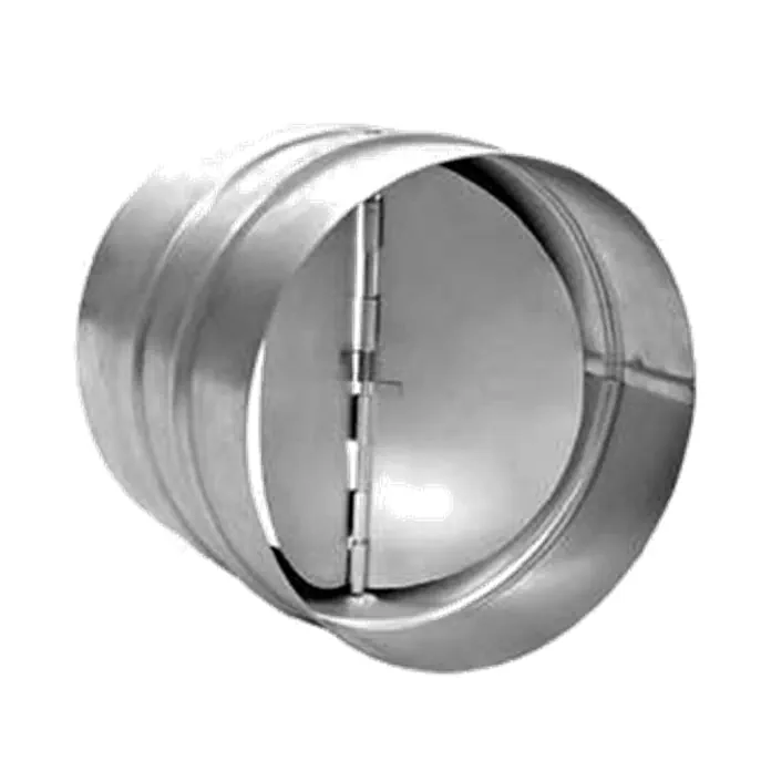 Clapeta circulara anti-retur cu inchidere etansa, este realizata din otel zincat cu lamelele din aluminiu. Lamelele sunt mentinute in pozitia inchis cu ajutorul unui arc, fiind evitata patrunderea aerului din exterior. Clapeta anti-retur cu inchidere etansa (garnitura interioara) permite trecerea fluxului de aer doar intr-un singur sens.