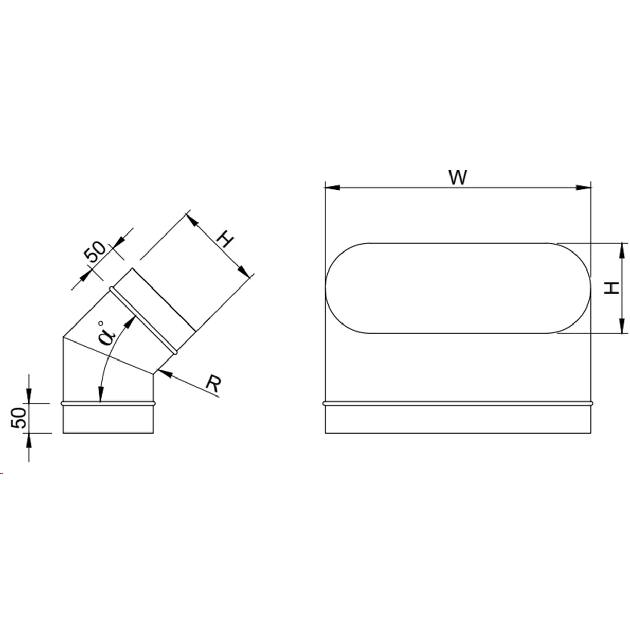 Cot 45° plat-oval vertical din segmente faltuite din otel zincat se foloseste pentru schimbari de directie.