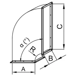 Cot rectangular redus realizat din otel zincat, se foloseste pentru schimbari de directie in plan orizontal, vertical sau oblic. Se executa standard cu raza R=100 mm. Pentru o mai buna circulatie a aerului, la coturile rectangulare de dimensiuni mai mari se monteaza in interiorul lor dirijori de aer.
