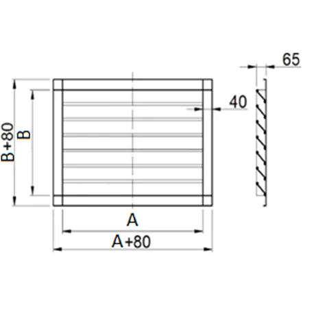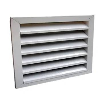 Grila de exterior din otel, cu jaluzele fixe, inclinate la 45⁰, avand un profil special ce impiedica patrunderea apei. Este prevazuta standard cu plasa metalica (pe partea din spate a grilei) (impotriva patrunderii frunzelor, insectelor, pasarilor etc.)