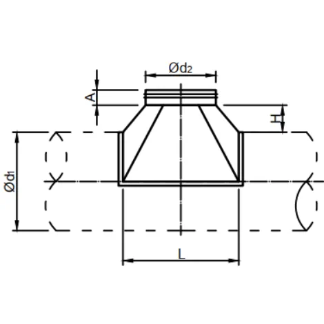 Piesa de ramificatie tip SA excentrica este o piesa de racord la suprafata circulara, pentru realizare de ramificatii la 90°, atit in sistemele de introducere cit si in cele de evacuare.