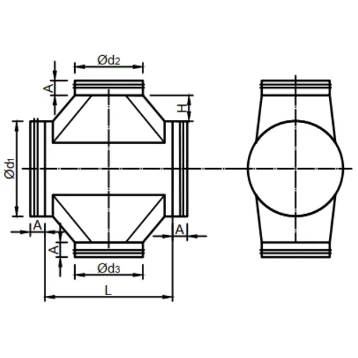 Piesa de tip “X” este folosita in sistemele de climatizare si ventilatie pentru realizarea de bifurcatii in tronsoanele de tubulatura, atit flexibila cit si rigida, pentru evacuare sau introducere cit mai uniforma a aerului.