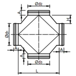 Piesa de tip “X” este folosita in sistemele de climatizare si ventilatie pentru realizarea de bifurcatii in tronsoanele de tubulatura, atit flexibila cit si rigida, pentru evacuare sau introducere cit mai uniforma a aerului.