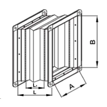 Racordul flexibil rectangular este folosit pentru atenuarea vibratiilor in conexiunea dintre unitatile de gestionare a aerului si sistemele de tubulaturi Temperatura standard -30°C/ +70°C (S) la cerere se poate comanda racord flexibil antivibrant pentru temperaturi ridicate -50°C / +200°C (RF).