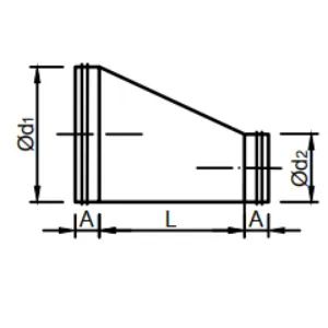 Reductie Circulara Simetrica. Se foloseste pentru trecerea de la un diametru la altul. Se executa din tabla din otel zincat.