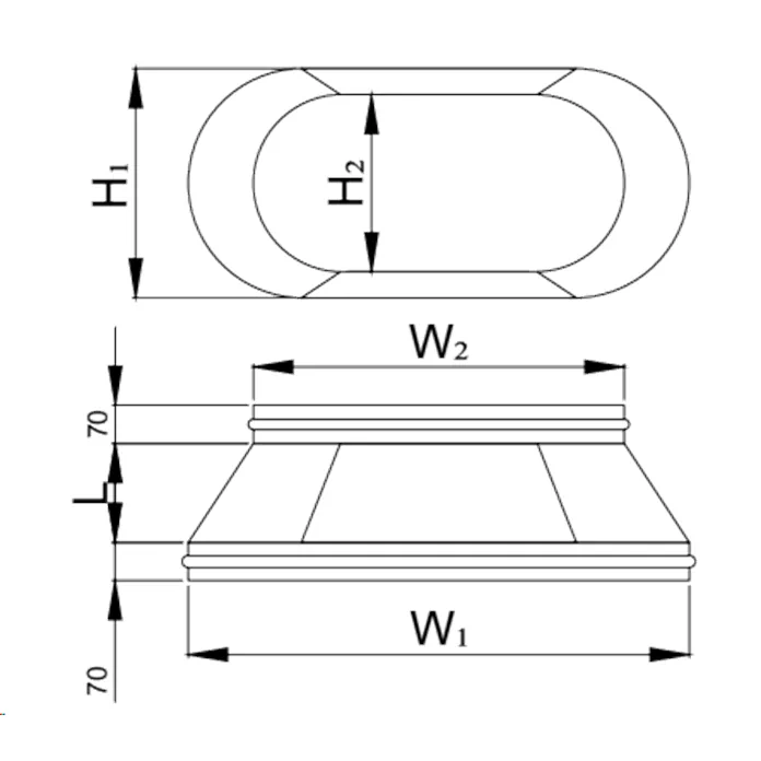 Reductia pentru conducte ovale se foloseste pentru trecerea de la un diametru la altul. Se executa din otel zincat.