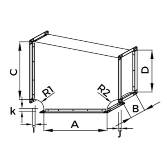 Racordul tip “T” este folosit in sistemele de climatizare si ventilatie pentru realizarea de bifurcati in tronsoanele de tubulatura, in vederea evacuarii sau introducerii cit mai uniforme a aerului din incapere. Este confectionat din otel zincat. Se executa standard cu raza R=100.